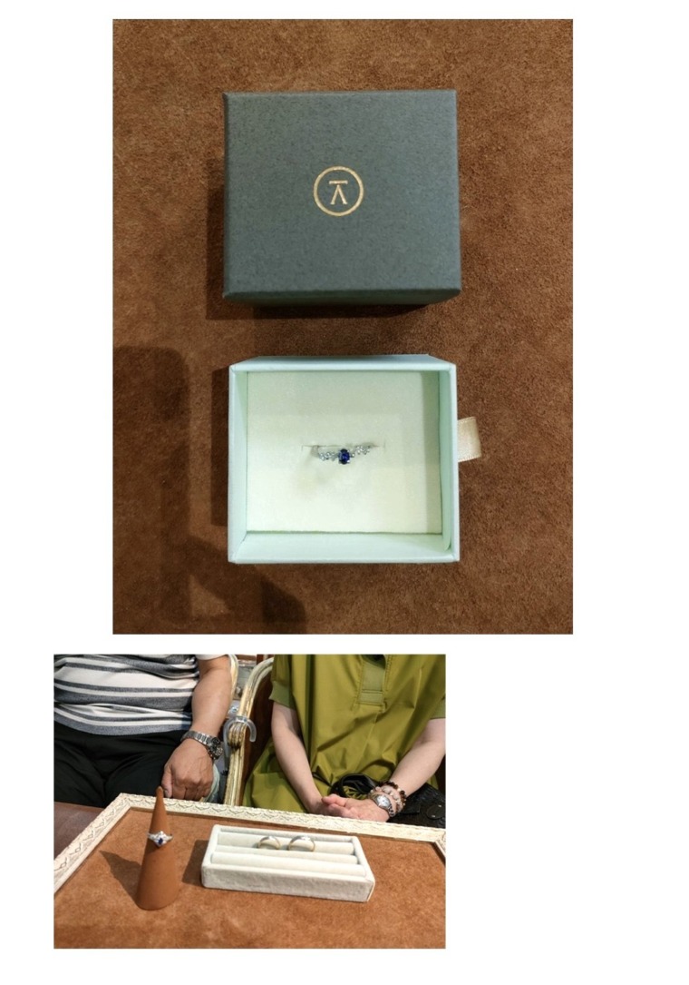 ▴結婚当初に贈られたきれいな色のサファイヤの指輪をジュエリーリフォームしたいとご相談頂きました。